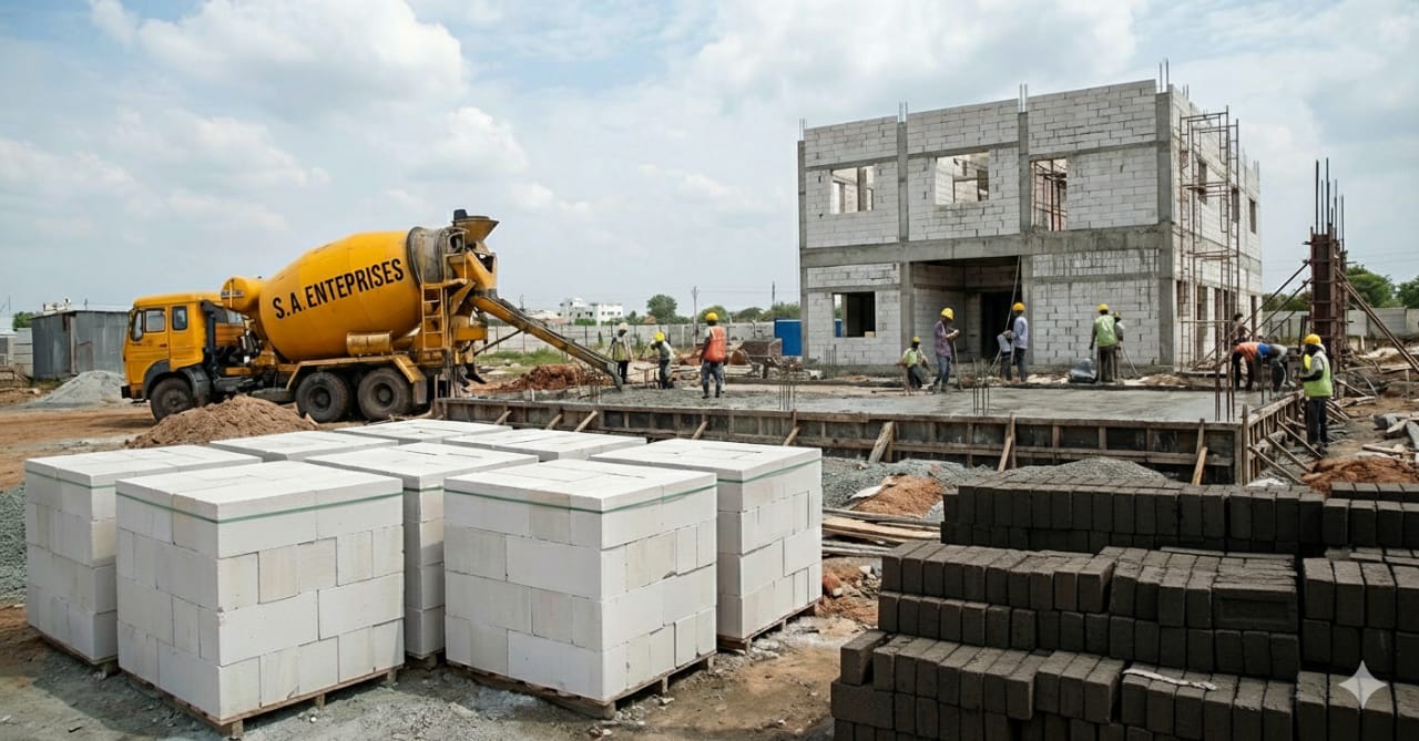 Welcome to SA Enterprises, a trusted name in construction materials since 2004. We take pride in supplying high-quality AAC blocks, fly ash bricks, solid concrete blocks, paver blocks, red bricks, and construction sand to support strong and reliable building projects. With a commitment to quality, transparency, and customer satisfaction, we continue to serve builders, contractors, and industries with excellence and trust.
